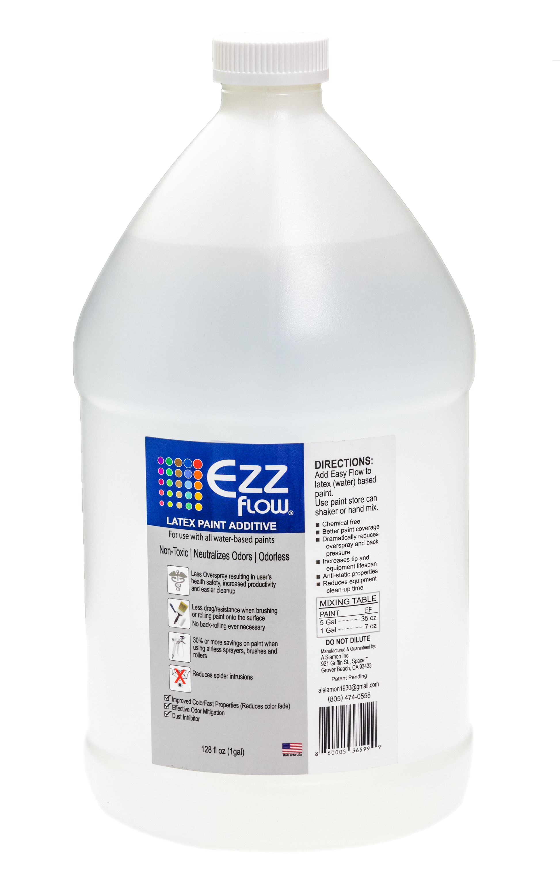 Directions for use: Add EZZ Flow to water based paint, mix thoroughly